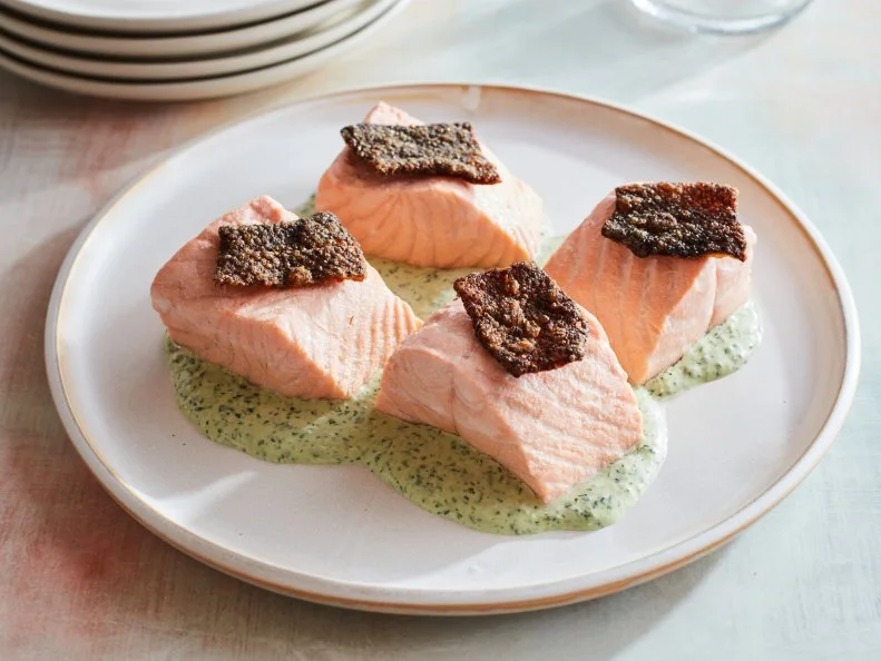Keto Poached Salmon with Green Goddess Sauce